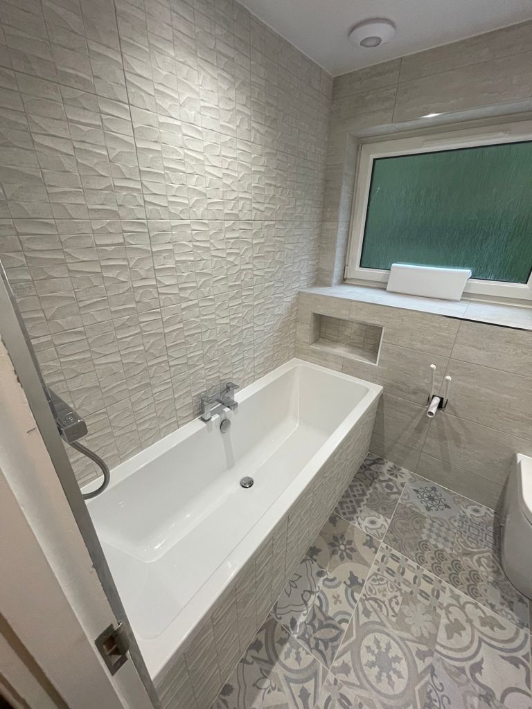 Another gorgeous refurb of a main bathroom in Kilmarnock. Our clients wanted to keep the bath so enhance the look we tiled the bath panel.