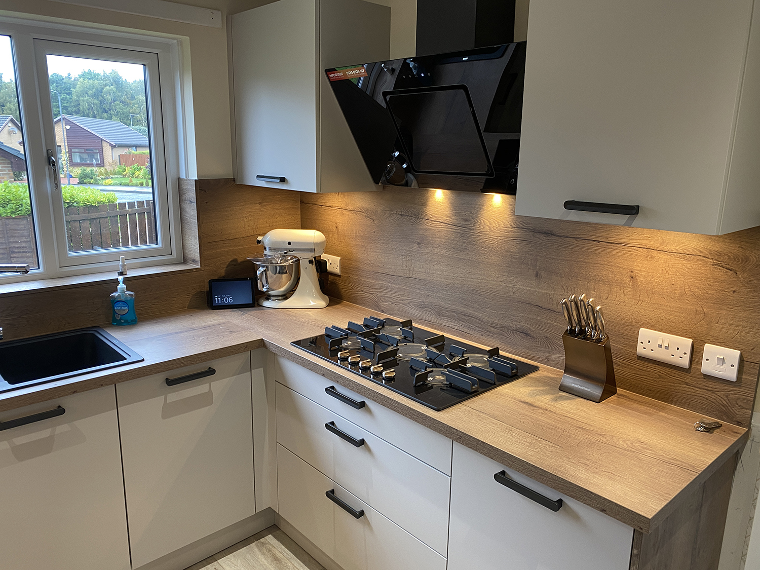 Kitchen in Sand Grey … all designed and fitted by Tristan and his in house team.